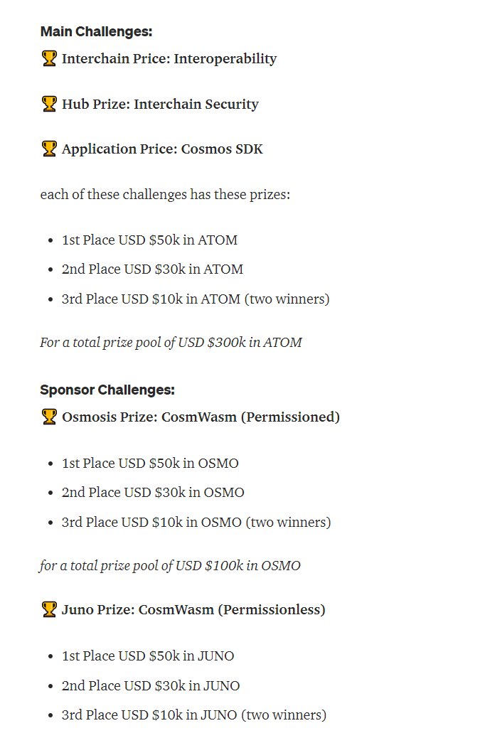 The prize amount was selected simply based on the amount that Osmosis and Juno are offering ($100K each).